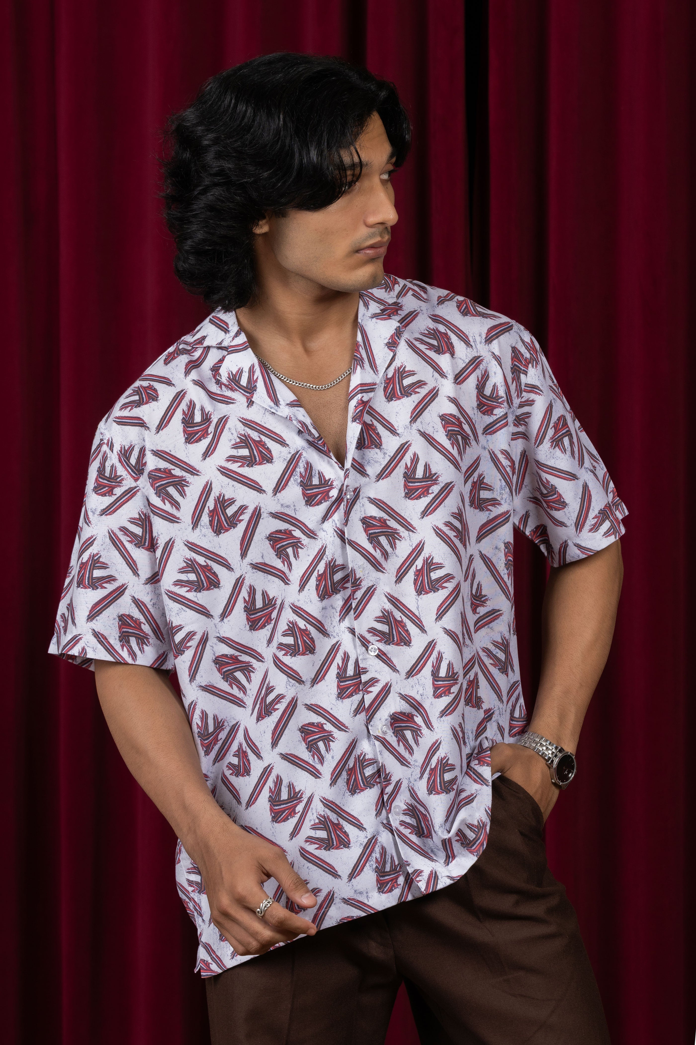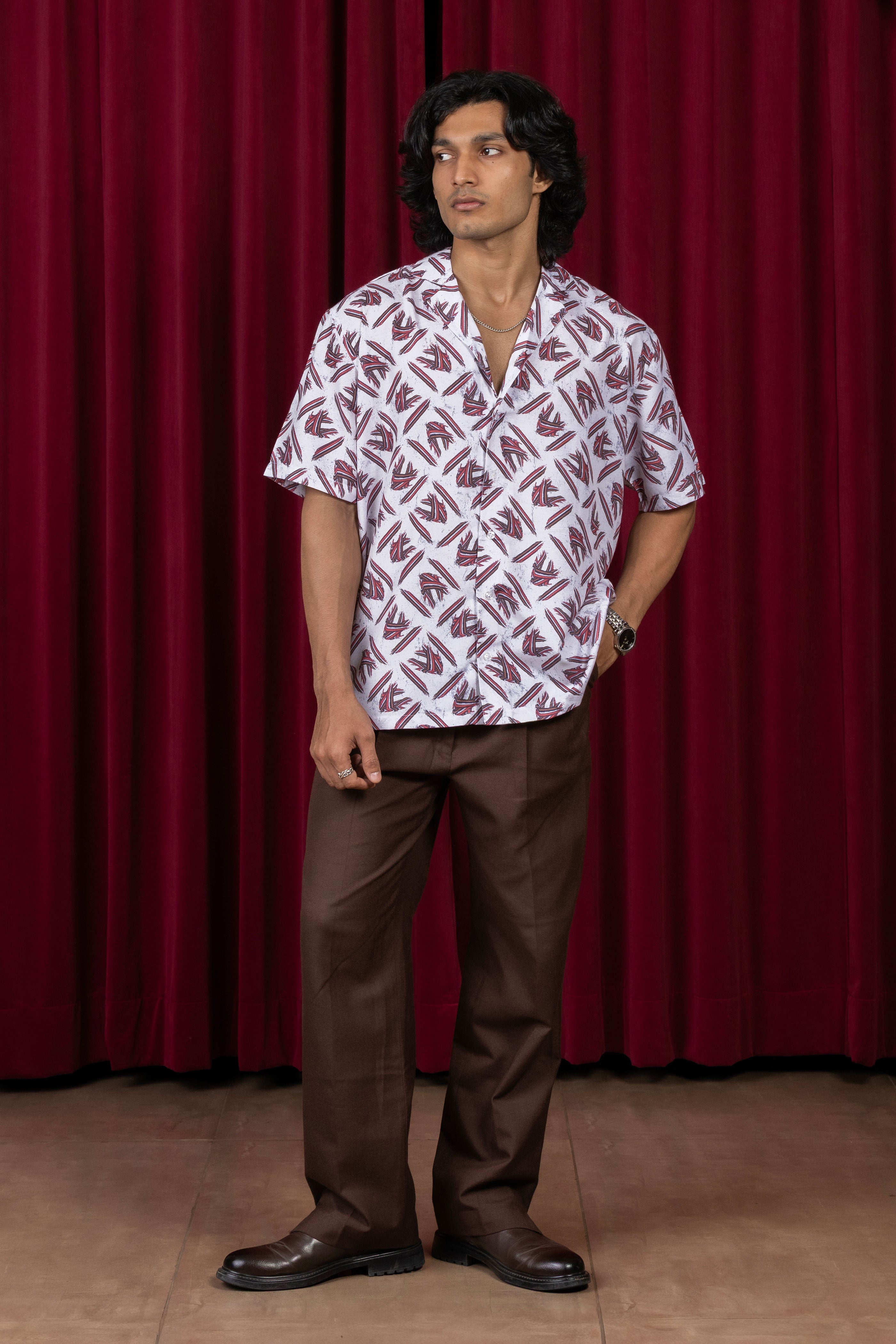 Cut in a mildly textured viscose blend, the Mythikaya Cuban Collared Shirt flows with ease and breathes with natural comfort. The Cuban collar frames the neckline with quiet sharpness, while the fabric lends understated luxury through its light drape and movement.