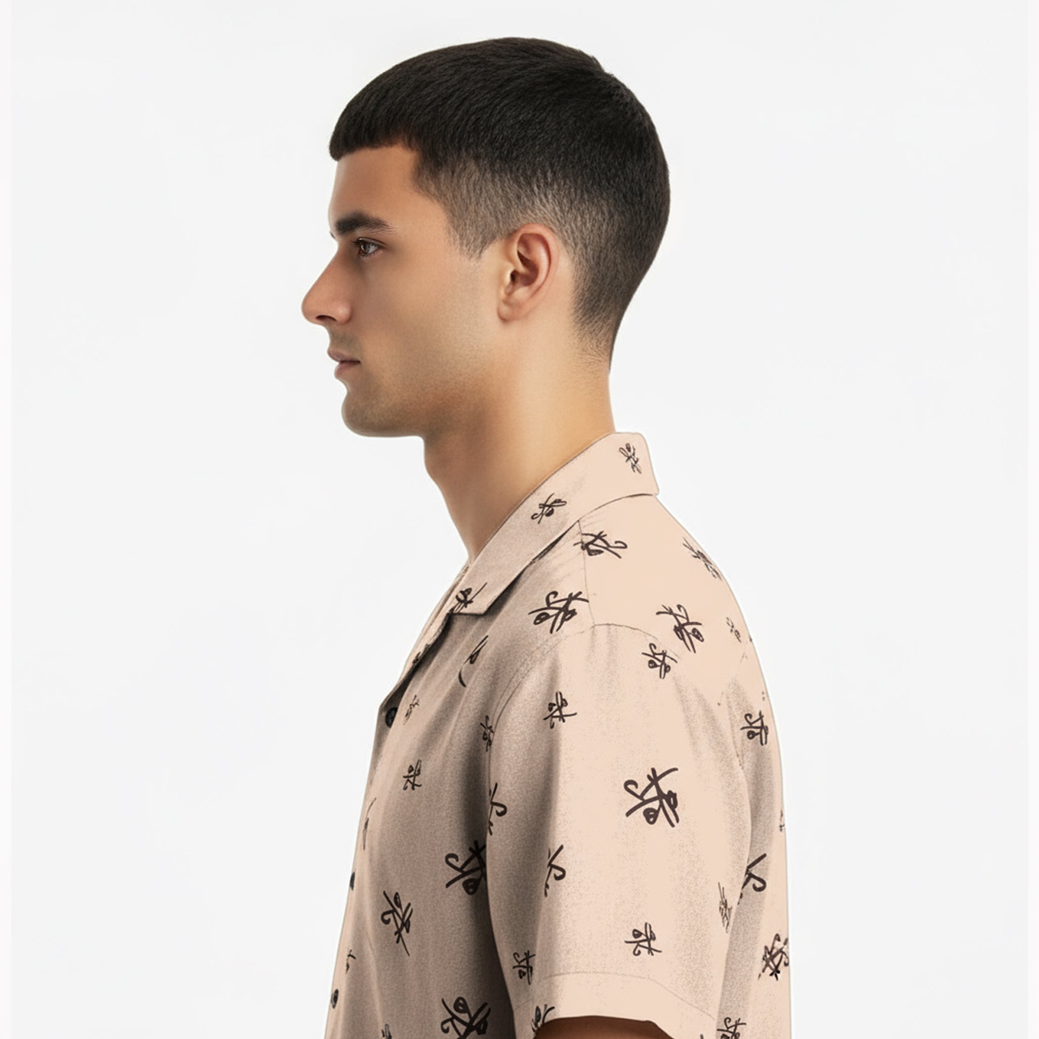 “Victory Pattern” Elegance in repetition - the Tezhhomayaa Victory scribble motif is scattered evenly across the shirt, creating a quiet rhythm that feels deliberate and refined. Simple, yet unmistakably distinctive, it's a design that celebrates subtle confidence: art that whispers rather than shouts, and style that stands on its own.